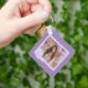 Esta chaveiro de Quinceañera personalizada é uma defesa perfeita ou um favor partidário. Personalize-o com uma foto apreciada, o nome da Quinceañera e o ano do evento. A design apresenta um elegante texto "Mis Quince", um pequeno sotaque de diamante, e um padrão de diamante de lavanda na moda. Um belo e memorável presente para seu dia especial. Mostrada em uma lavanda de tendência e paleta lilás, mas todas as cores podem ser editadas para combinar com a foto dela. Certifique-se de editar os dois lados se o fazer for alterado. © Kimbellish, LLC