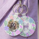 This lavender floral wreath keychain highlights your Cavalier King Charles Spaniel with a gentle pastel tone. Personalize the front with your dog's name under the silhouette. The back features space to upload a favorite photo for a meaningful accessory. A lovely choice for birthdays, holidays, or pet parents. The pastel palette gives it a clean, modern finish.