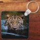Esta cadeia-chave é mostrada no estilo quadrado com uma impressão fotográfica de um gato-leopardo selvagem. Personalize este item ou comprar conforme mostrado. Imagem licenciada