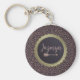 Um exótico impressão de pelo falso rosa de cabelos-leopardo-mauve é o pano de fundo para esta cadeia-chave na moda com uma elegante esfera-escura e dourada com uma pena cor-de-rosa onde você pode personalizá-la com um nome, letra ou logotipo para torná-la única sua. Tema do leopardo-chic