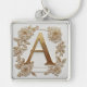 Chaveiro Letra A Dourada Elegante com Flores Delicadas