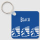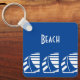 Um porta-chaves personalizável de praia, piscina ou doca com letras art déco e um padrão de barcos à vela brancos navegando pelas ondas do oceano ventosas, em um fundo azul profundo.