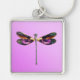Chaveiro Libélula - prata, ouro, roxo e preto
