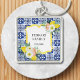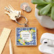 Carregar toque de Itália com este charmoso chaveiro! Apresentando um design de limão, um azulejo azul-marinho mediterrânico e sotaques botânicos florais.