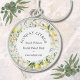 Promova sua empresa com limões amarelos e flores brancas Floral Wreath chaveiro. Apresentando uma bela ilustração com aquarela com textos personalizáveis, é excelente de dar sotaque fresco e natural à sua marca comercial. Adequado para restaurante, café, padaria, comida artística, estúdio de velas artísticas e loja de produtos para banho e corpo.