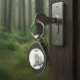 Anexe uma pequena peça de arte às suas chaves com este charmoso porta-chaves. Com uma encantadora pintura em aquarela de um sapo empoleirado em um galho, este design captura a essência de um momento tranquilo na floresta. As suaves e artísticas lavagens em verde, marrom e toques de azul e amarelo criam uma sensação fresca e natural. Perfeito para quem carrega consigo o amor pela natureza, arte ou um pouco de magia. Faça com que seja seu com um toque personalizado.