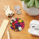 Este chaveiro de botão brilhante e colorido mostra a minha fotografia de uma cama de flores amarelas, brancas, mauve e cor-de-rosa de Polyanthus. Esta atração do zip faria um belo presente e um acessório colorido.