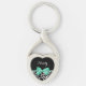 Um chaveiro em forma de coração com estampa de girafa preta e branca feminina e uma linda fita verde menta amarrada em um laço fofo. Personalize este design trendy de estampa animal adicionando seu nome. Imagem impressa plana, não é um laço real.