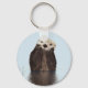 Uma corrente chave com uma fotografia da natureza de uma adorável lontra parada num lago de água fresca, segurando seu rosto em suas patas com um aspecto tão fofo e doce.