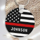 Chaveiro da linha vermelha fina personalizada - bandeira americana em cores de bandeira de bombeiro, design vermelho preto moderno. Personalize com o nome do bombeiro ou o departamento de bombeiros. Este chaveiro de bombeiros personalizado é perfeito para os bombeiros, serviço de bombeiros ou como um guardião memorial. COPYRIGHT © 2020 Judy Burrows, Black Dog Art - Todos Os Direitos Reservados. Bombeiro Personalizado chaveiro da linha vermelha fina moderna