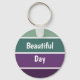 Um padrão horizontal verde e roxo listrado e o texto: Belo Dia. Você pode clicar em personalizar e editar o texto. Escreva duas palavras em uma linha.