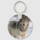 Um lobo magnífico, atravessando uma paisagem nevada.