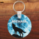 Chaveiro Lobo Uivando Fumaça azul de neve de inverno Nome p