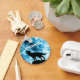 Personalize com seu nome personalizado. Fumaça azul e branca de inverno geométrico abstrato com silhueta de lobo preto.