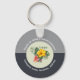 Anel redondo com chave de alumínio com o logotipo da empresa modelo. Adicione também uma mensagem curta de "obrigado" para os clientes e/ou inclua o nome e endereço da empresa. Uma linha de curvas de texto brancas e impressas na parte superior do logotipo e as outras curvas na parte inferior. As cores de fundo são preto e cinza. Perfeito como um pequeno presente prático que dá a clientes e clientes. Altere as cores na ferramenta design.