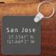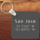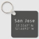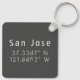 Chaveiro com a latitude e a longitude de San Jose California, coordenadas em fontes urbanas modernas, sobre fundo de cinza escuro