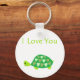 Adoro chaveiro de Tartaruga. A chaveiro personalizável tem uma tartaruga de amor verde com as palavras que te amo.