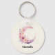 Chaveiro Lua de Crescente Rosa com Flores Bonito