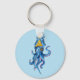 design decorativo de uma lula de cor azul, polvo ou kraken com elementos ornamentais na cabeça e tentáculos num chaveiro de botão.