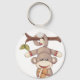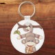 Um macaco pendurado na cauda segurando uma bola. Esta design parece realmente eficaz nestes Chaveiro
