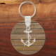 Uma âncora náutica branca e painéis de madeira marrom-rustica vintage.Um design popular sobre fundo de textura de madeira. O dom perfeito e único para cada ocasião