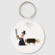Um mágico a fazer um truque com uma motosserra. Esta design parece realmente eficaz nestes Chaveiro