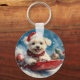 Chaveiro Maltês Cachorro com Sledge Deixe-o nevar no Natal