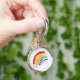 Este trabalho de arte apresenta um arco-íris colorido num estilo de salpicos de aquarela.