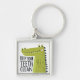 Características deste design tiradas mão um crocodilo de sorriso com uma saúde que promove a frase.