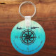 Teal Ombre Sea Chaveiro. Um rosa de bússola para manter seus mancais oceânicos e tubarões Hammerhead para manter você acompanhado em suas viagens. Desfrute do efeito de ilusão óptica na moda com os tons chatos a azuis do fundo ombre. Mantenha a citação "Em um mar de mudança encontramos nossa verdadeira direção" ou adicione um nome, sentimento ou monograma para personalizar. Diversão, flerte e estilo fabuloso!