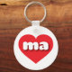 Esta cadeia-chave apresenta um coração vermelho vibrante contendo as mães de letras maiúsculas, brancas e arredondadas, uma abreviação lúdica para Massachusetts, o estado da baía.