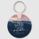 O chaveiro de Escritura de Citação Inspiracional retrata uma fotografia da natureza com um belo pôr do sol rosa e azul. Ele apresenta a Bíblia Verse Matthew 19:26, "Com Deus todas as coisas são possíveis." _