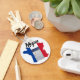 Megeve, França: uma aldeia de estância de esqui nos Alpes franceses. Souvenir chaveiro apresenta contorno da França com cores de bandeira francesa. A área branca da bandeira é representada pela foto da montanha coberta pela neve.