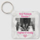 Este chaveiro de costume bonitinho faz um presente de excelente para a sua bestiça! E faça um para você mesmo! Personalize adicionando uma foto sua e de seu melhor amigo e os nomes de sua escolha. Um padrão de fundo de rosa branco e um coração composto de corações menores completam o design. A fonte e a cor do texto podem ser alteradas para ajustado de sua preferência. Os melhores amigos para sempre!!