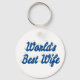 Corda chave com a melhor esposa do mundo em texto azul-marinho 3D. Correntes de chave redondas e quadradas disponíveis em vários tamanhos.