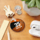 Este chaveiro de basquetebol masculino apresenta um gráfico simples de basquete com as cores de sua escola em preto e laranja em dois dos painéis do basquete e um nome de jogador facilmente personalizável e um grande número de camisa em estilo desportivo, letra de varsidade - por katz_d_zynes