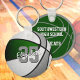 Esta equipe colorido o chaveiro do tema basquete apresenta a imagem realista de uma bola de basquete que tem painéis coloridos verdes, brancos e cinzas alternados na frente e uma simples forma verde de basquete no verso - personalize facilmente com o nome do jogador & número de camisa na frente e na escola ou nome do clube e nome do mascote no verso - por katz_d_zynes