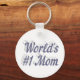 Corrente chave com a mãe número 1 do mundo em texto de cinza azul 3D. Correntes de chave redondas e quadradas disponíveis em vários tamanhos.