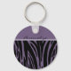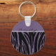 O Chaveiro de Botão Básico Personalizado tem um padrão de zebra ou stripes de tigre preto e roxo.