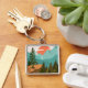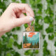 Introducing our Modern Abstract Forest, Mountains, and Sunrise Keychain. Featuring landscape illustration in vintage style. Suitable for as a gift for nature, camping, and hiking enthusiasts.