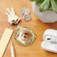 Celebrate your furry best friend with this beautiful, personalized keychain featuring your dog's photo. The round design is encased in a glamorous golden glitter paw print border, adding a touch of sparkle to your keys, bag, or backpack.