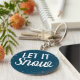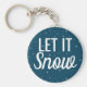 Chaveiro azul moderno e personalizável com flocos de neve brancos. A legenda branca dizia "Deixe-a nevar"