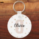 Linho de lavagem personalizado com um nome de monograma estético cor-de-rosa com pequenos corações no fundo.