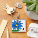 Black monogram initial against white background. Whimsical handpainted blue daisy with yellow center and green leaves. Designed for sqaure larger styles. Original Artwork by TamiraZDesigns.