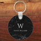 Chaveiro Nome Inicial Branco Moderno em Mármore Preto Monog