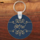 Chaveiro Monograma de Floreio Elegante Azul-Elegante Dourad