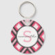 Padrão de ikat tribal rosa quente e cinza com monograma.