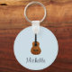 Chaveiro de monograma bonito, com uma imagem de guitarra acústica sobre fundo azul. Com as letras negras, você pode personalizar com seu próprio texto. Perfeito para suas chaves ou como presente para aquele guitarrista especial!