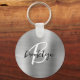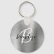 Este elegante chaveiro personalizado apresenta um monograma e primeiro nome em modernos roteiros preto e branco sobre um fundo de metal esfregado em falso prata.