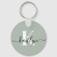 Este simples e elegante chaveiro verde sábio com seu primeiro nome em uma fonte de script de tendência em preto e seu primeiro inicial em uma fonte moderna de boné em branco é perfeito para suas chaves. É na moda e moda e, no entanto, muito clássico.